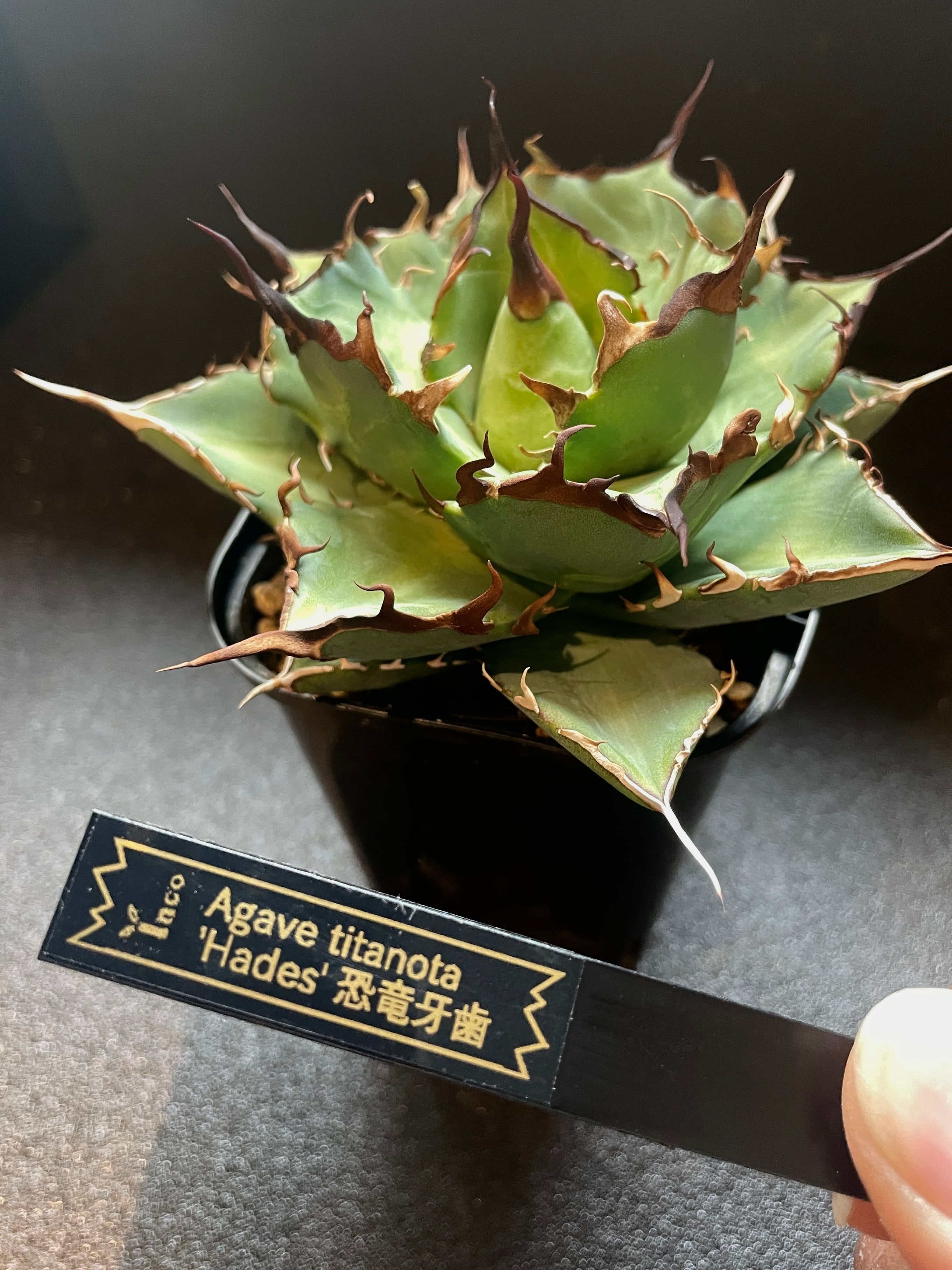 アガベ・チタノタ 'Hades' /ハデス/恐竜牙歯/インフェルノ/黒帝斯/スリットポットEG-90L