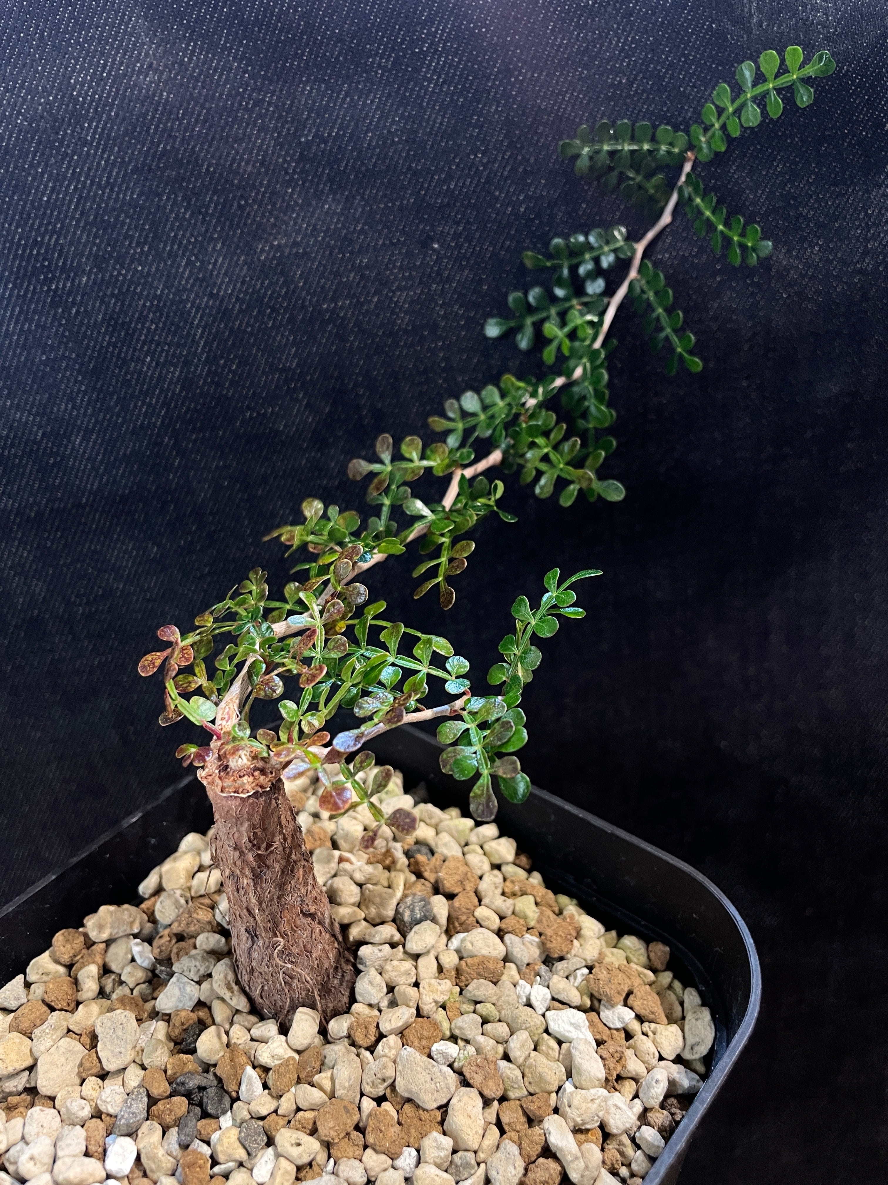 こちらの株はジグザグの枝を横向きに伸ばしているので、風になびく枝葉のような趣を感じられます。