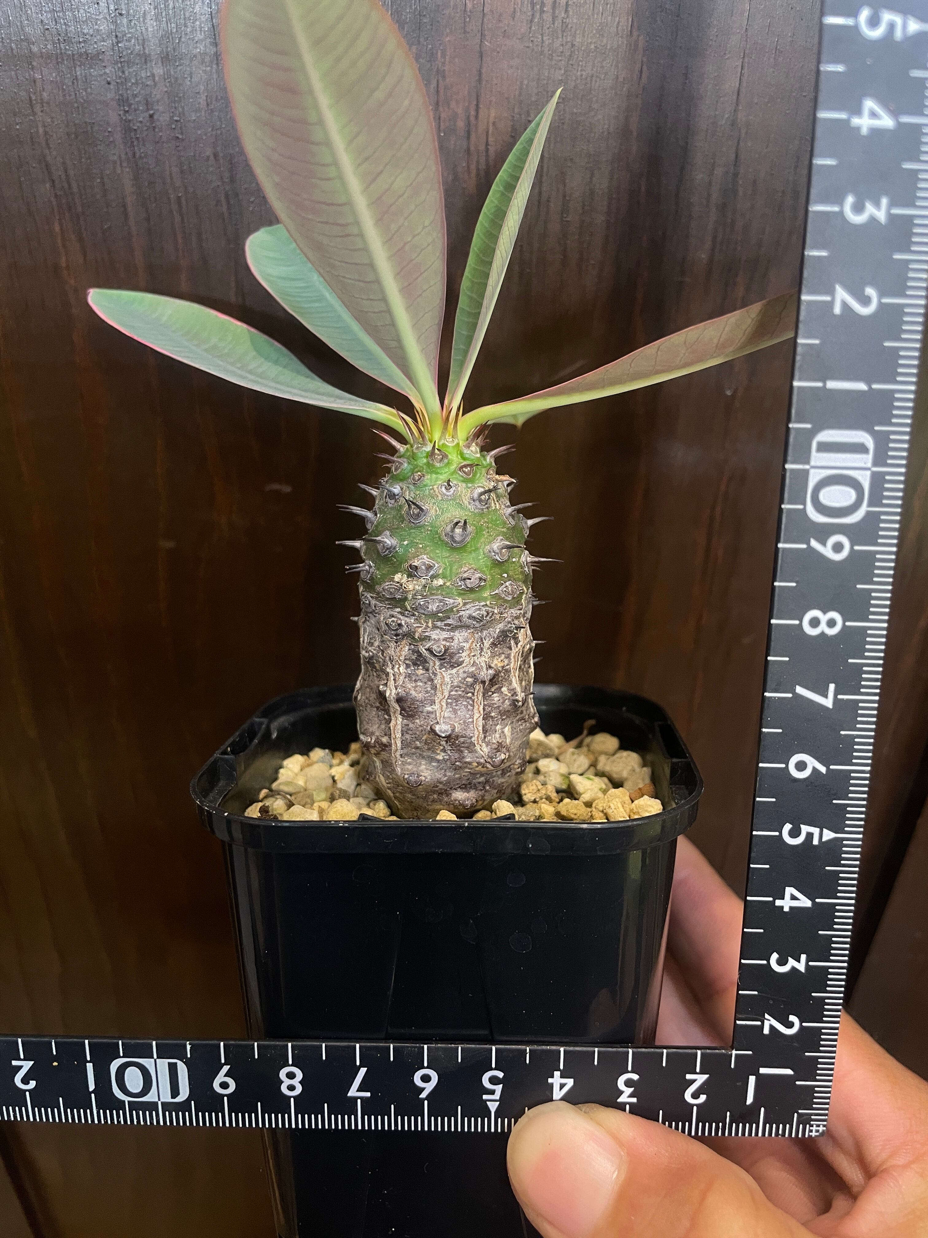 こちらの株は繊細な葉が傷むこともなくじっくり成長しており、幹の色合いもその奇妙な形を引き立てています。